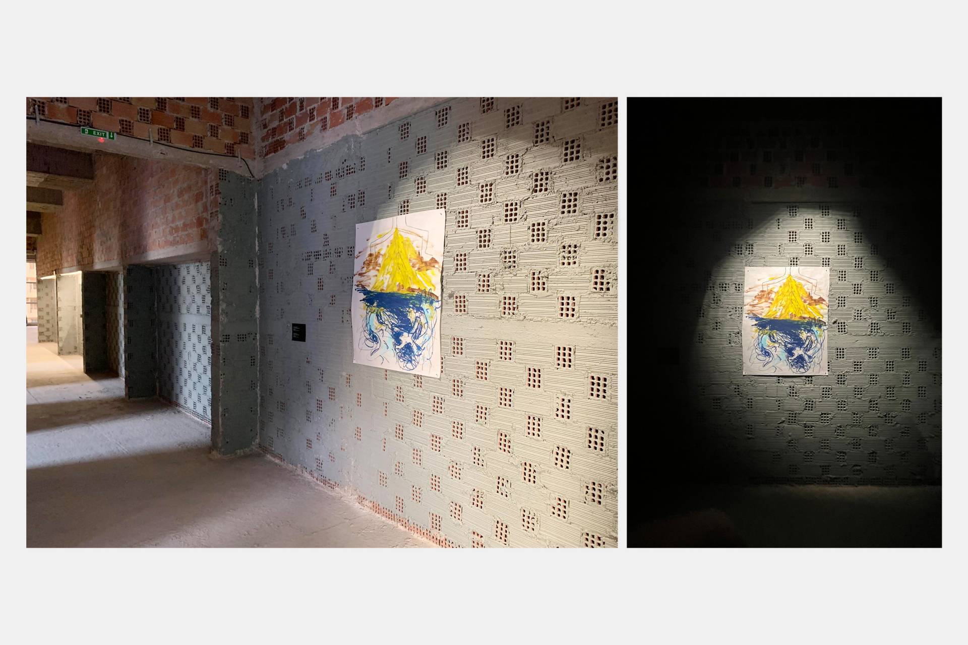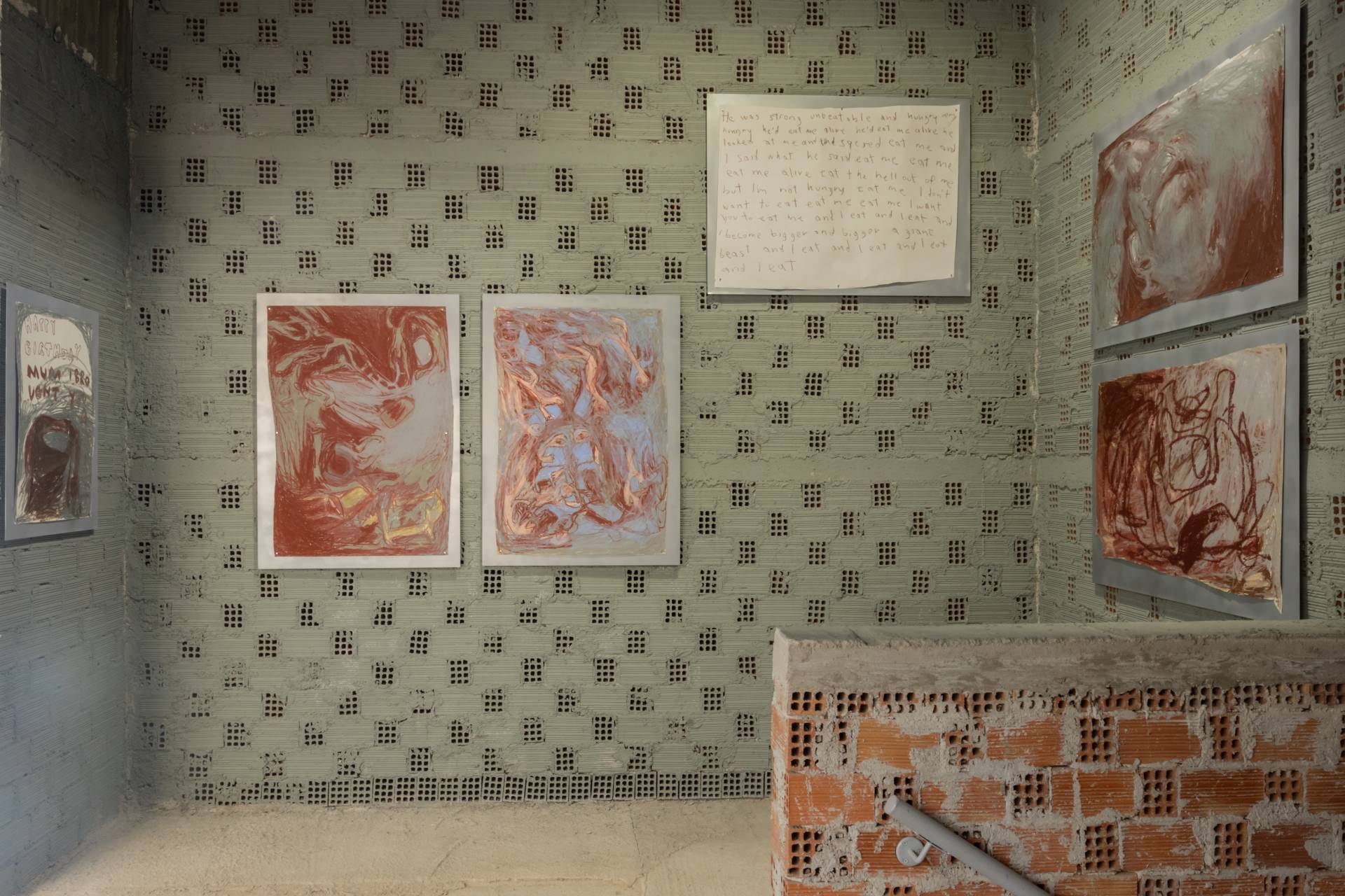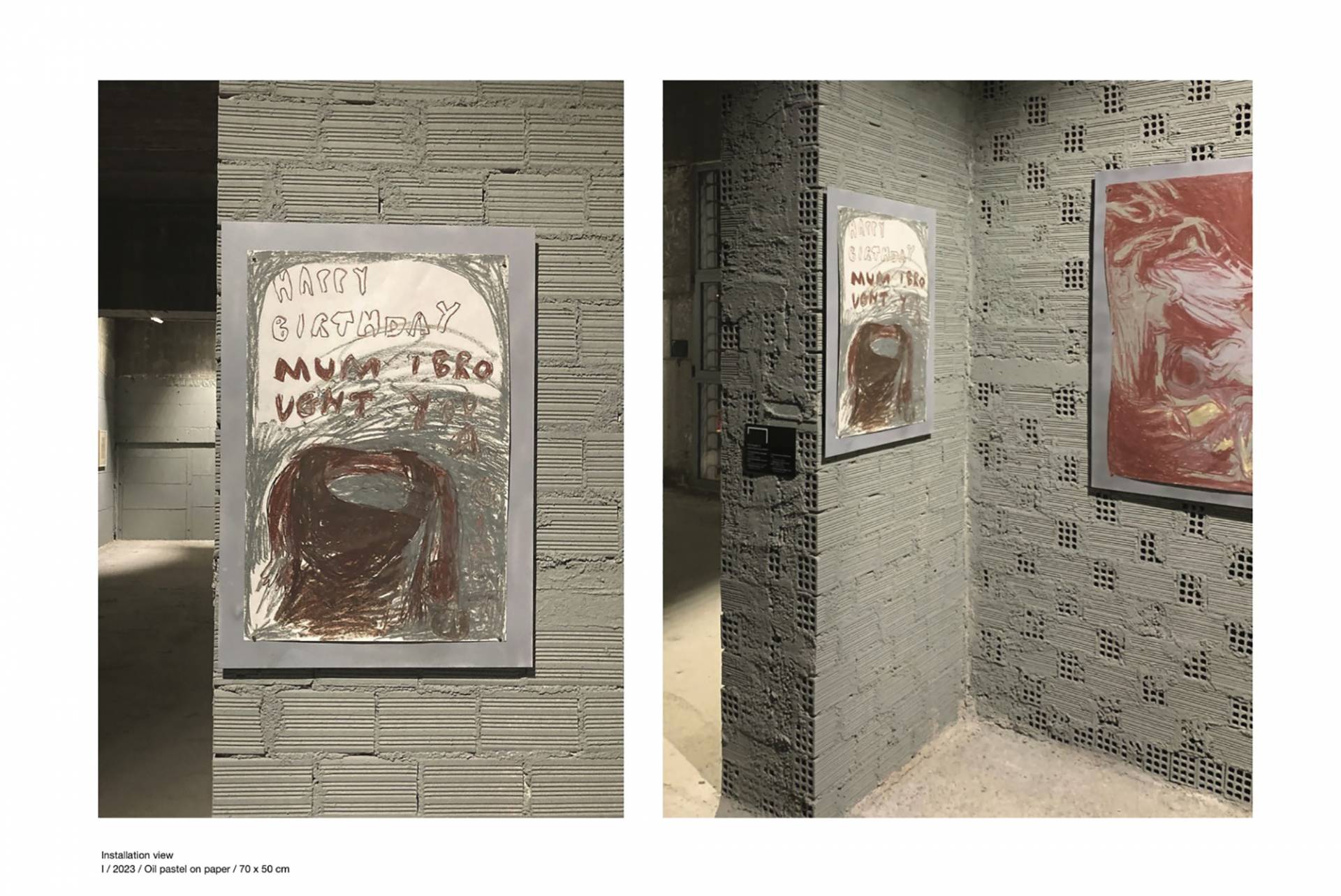 Installation views, Untitled, 2023, oil pastel and acrylic on paper, 99.5 x 78 cm.