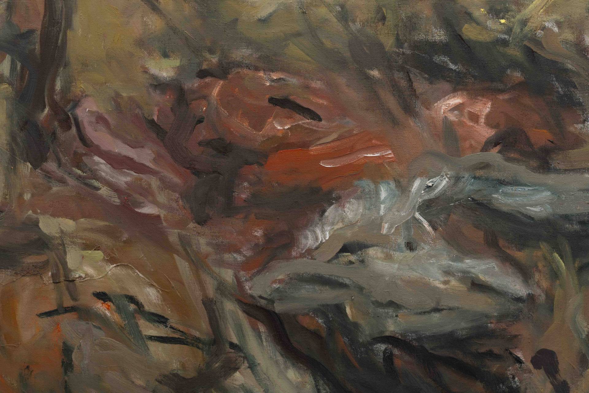 Eleni Tomadaki, what could it be everyone was after me they were blocking the ways out they were coming, 2025, oil on linen, 240 x 200 cm