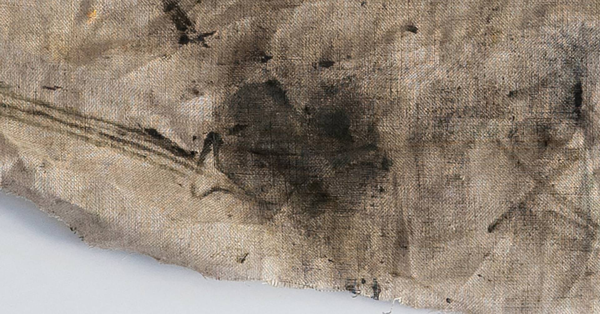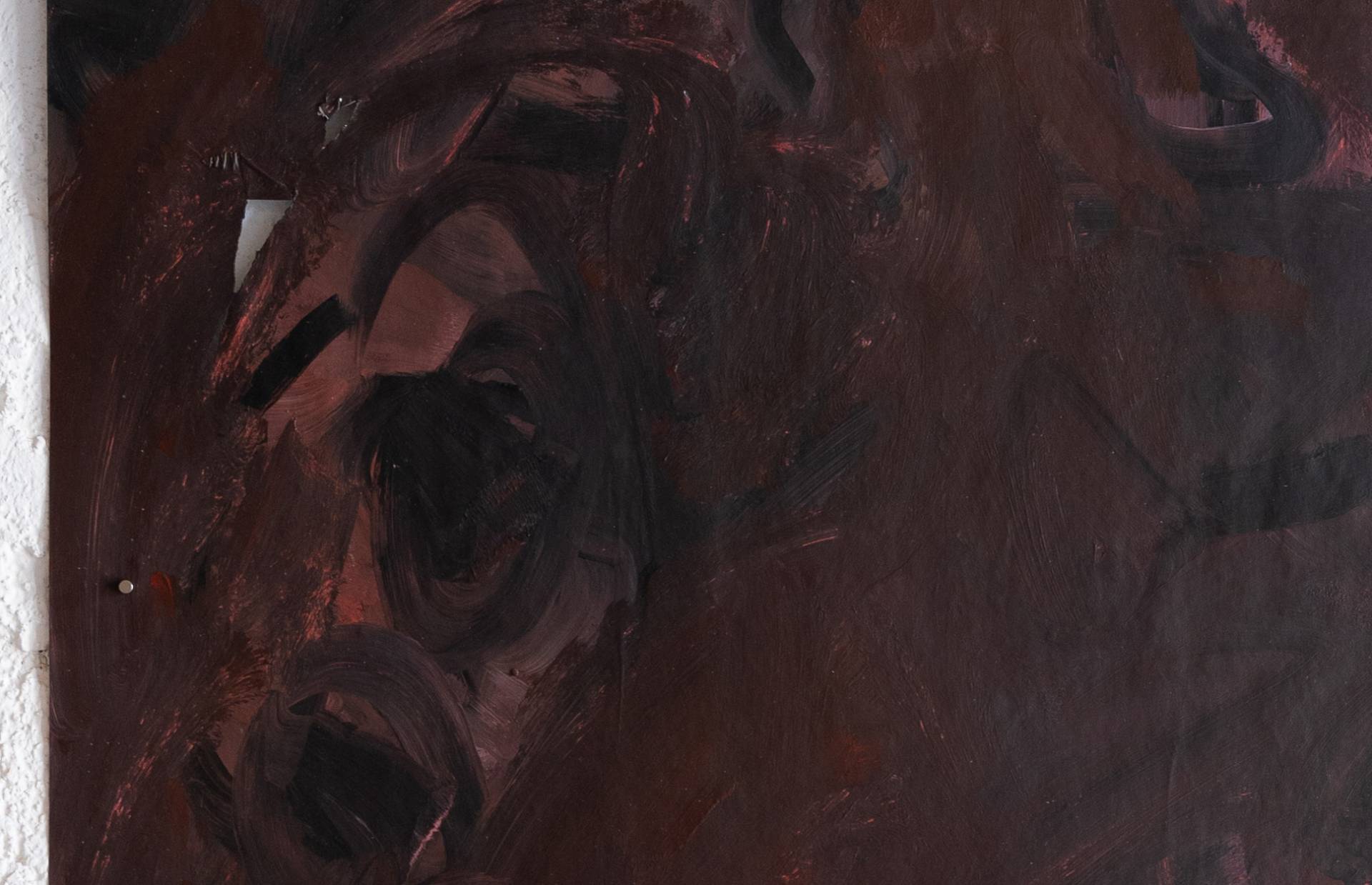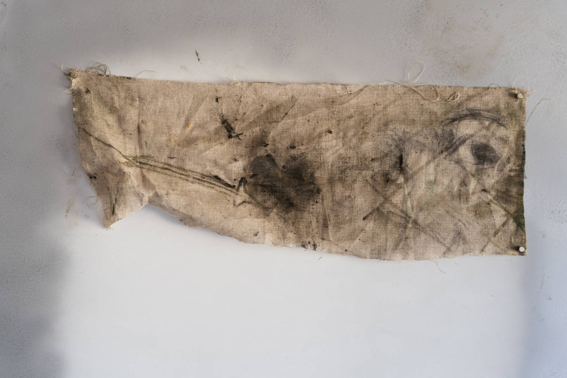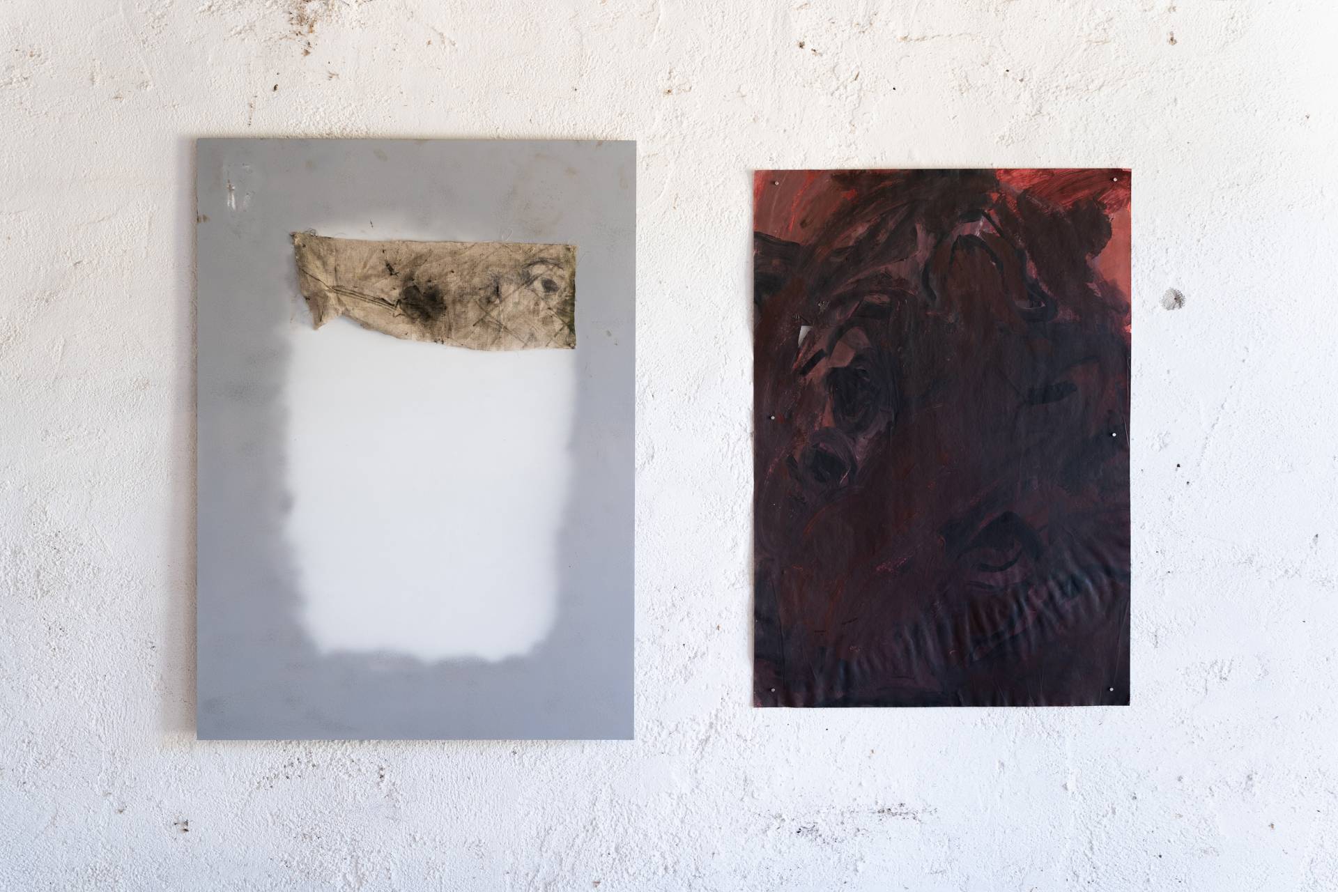 Installation views - Untitled (heart), 2024, oil and graphite on linen, spray paint, aluminium, acrylic on paper.